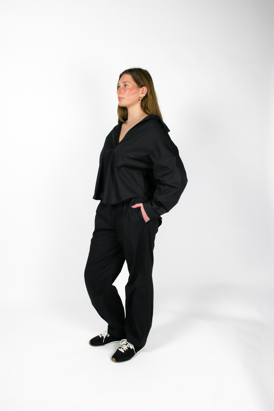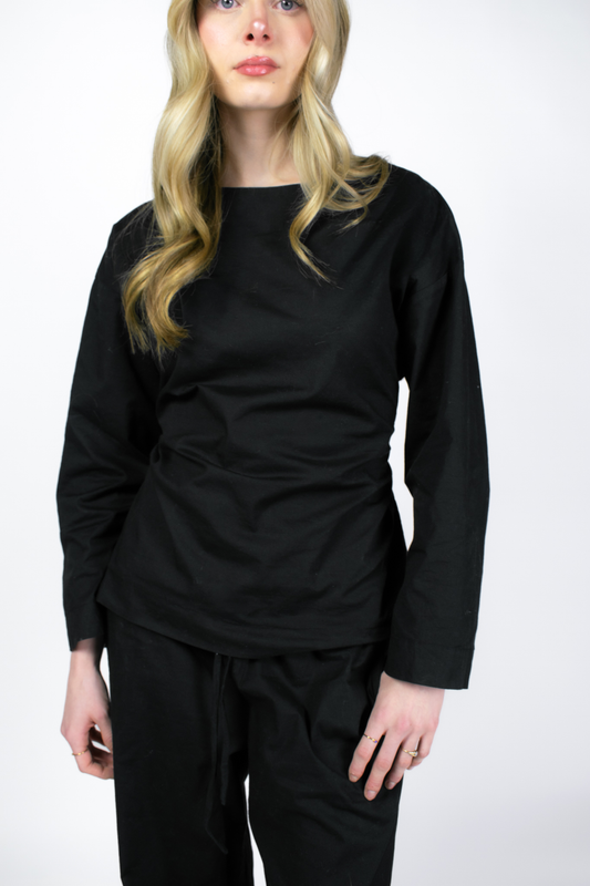 ISLA NOIR CINCHED WAIST LONG SLEEVE POPLIN TOP