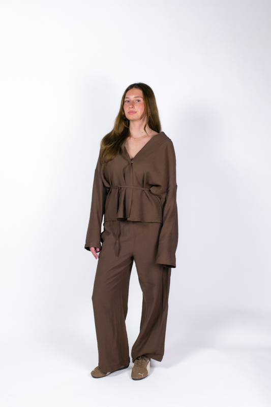 ELLE MAPLE TEXTURED BELTED BLOUSE