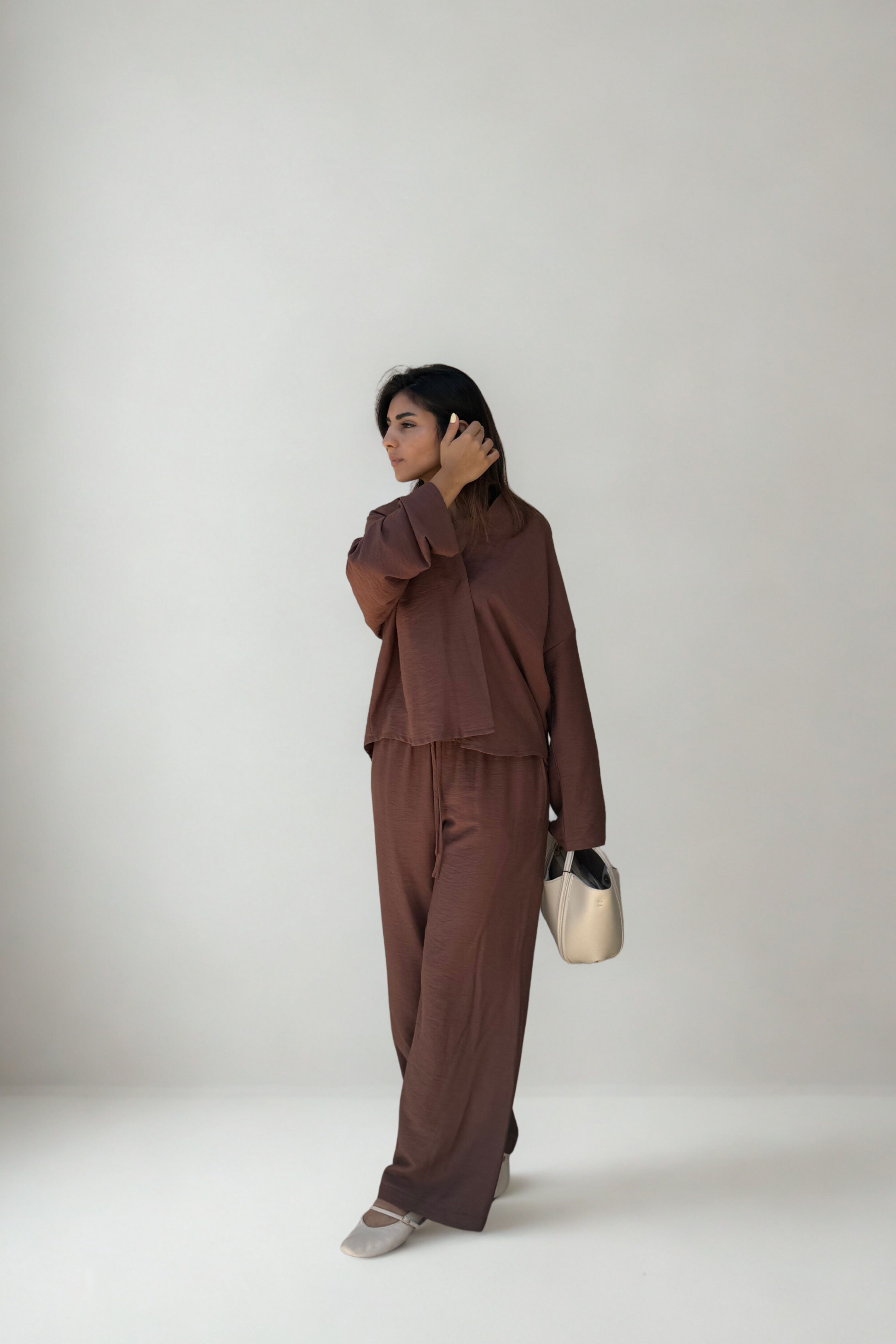 The AVA MAPLE TEXTURED PANT is a timeless essential, designed with a structured yet effortless silhouette. Crafted from premium textured fabric in a warm maple hue, these high-rise pants offer a flattering fit with a refined drape. The relaxed, tailored shape makes them perfect for both elevated and everyday styling. Pair them with the AVA MAPLE TEXTURED TOP for a cohesive, modern look or style them with a classic blouse for a versatile wardrobe staple.