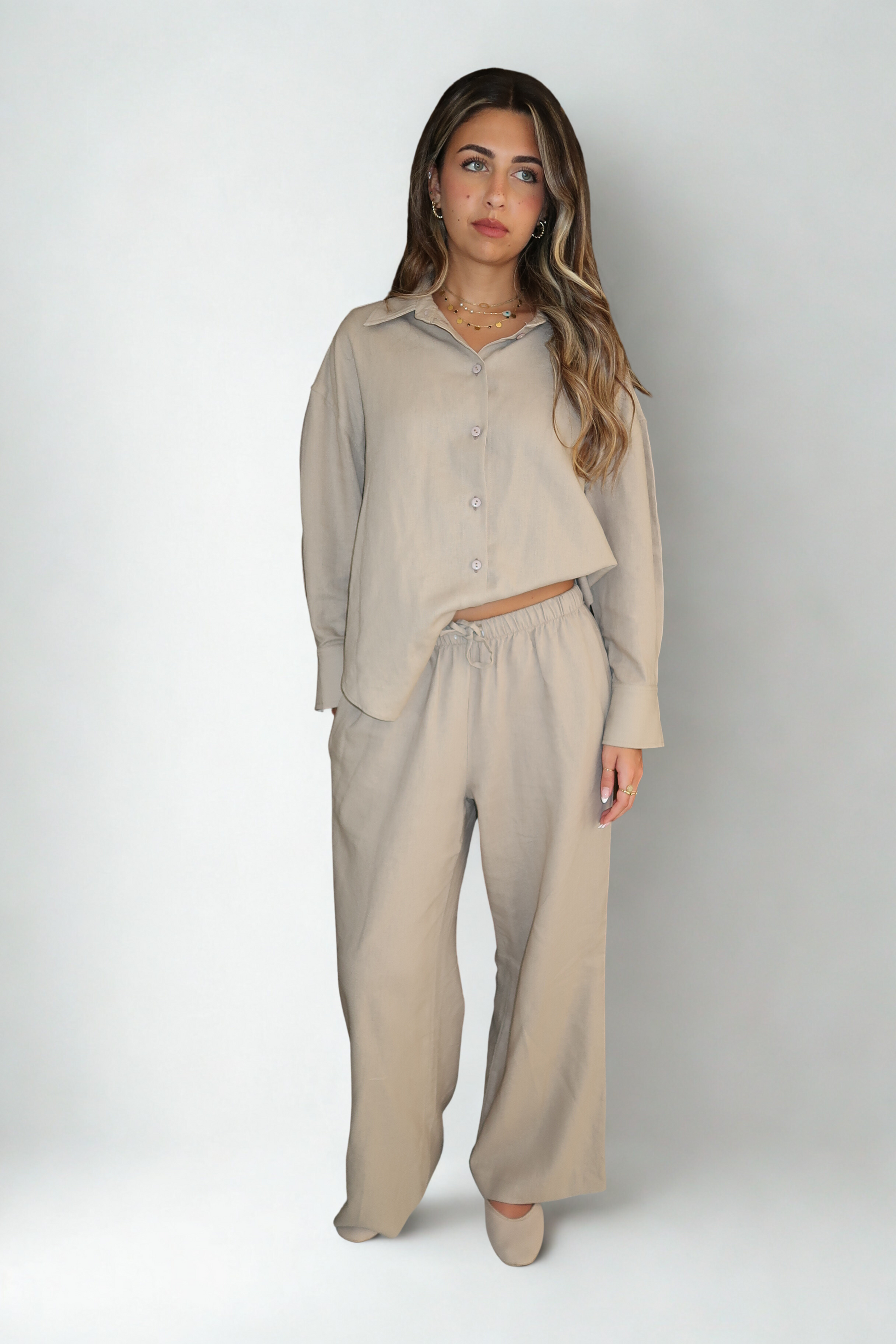 The NAYA LINEN RELAXED PANT combines refined comfort with timeless style. Crafted from premium, naturally sourced linen, these pants offer a breathable, lightweight feel that ensures all-day comfort. The relaxed, flowy fit is complemented by an elastic waistband with an adjustable tie, providing a perfect balance of ease and structure. Linen’s signature texture and durability make these pants a versatile wardrobe essential, ideal for both casual outings and laid-back elegance. Pair them with the NAYA LINEN SLEEVELESS TOP for a coordinated, effortlessly chic look.